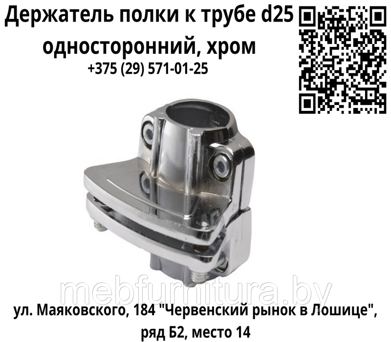 Держатель полки для трубы диаметром 25 мм, модель 595, односторонний в хромированном исполнении — это надежное и эстетичное решение для создания функциональных систем хранения. Данный кронштейн предназначен для крепления полок к одной стороне вертикальной трубы-стойки, обеспечивая прочность и визуальную легкость конструкции.