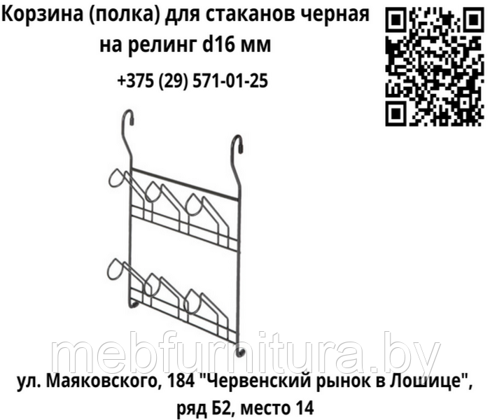 Корзина (полка) для стаканов черная на релинг d16 мм
