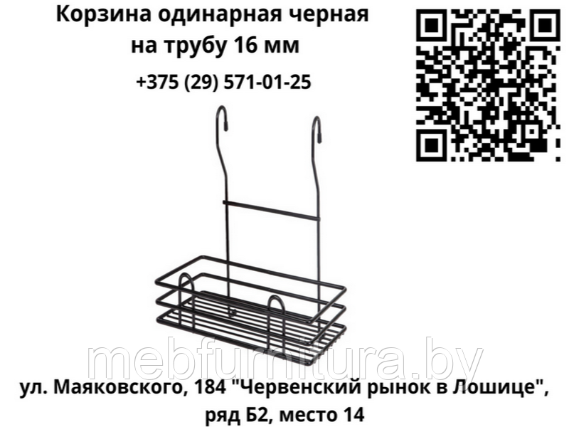 Корзина (полка) одинарная черная на релинг 16 мм