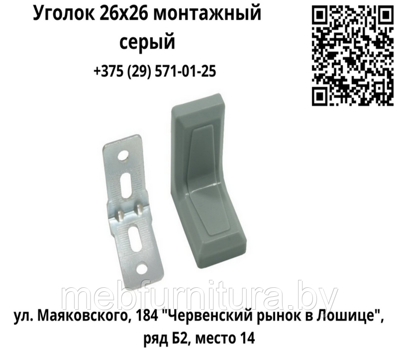 Уголок 26х26 монтажный с декоративной накладкой серый