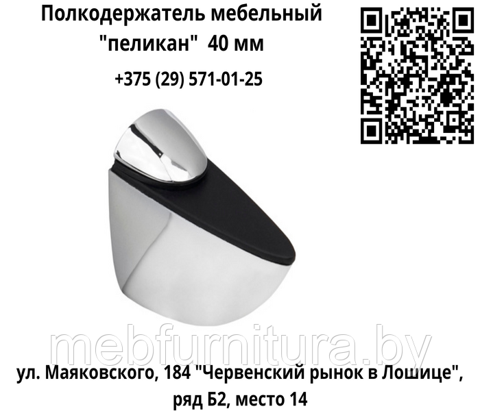 Полкодержатель мебельный "пеликан" 40 мм хром
