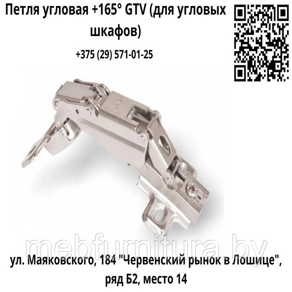 Петля мебельная угловая +165° GTV: Максимальный доступ в угловые шкафы