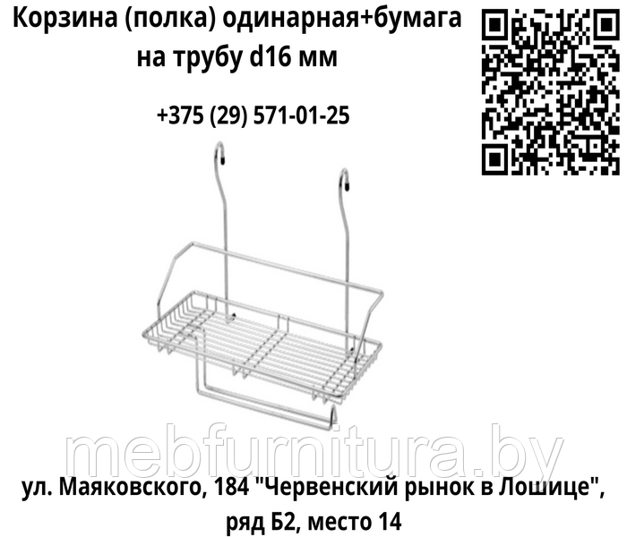 Корзина (полка) одинарная+бумага на трубу d16 мм