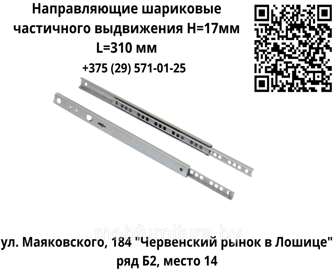 Направляющие шариковые частичного выдвижения H=17мм L=310 мм