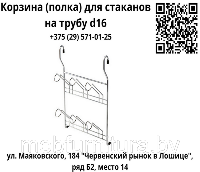 Корзина (полка) для стаканов на релинг d16 мм